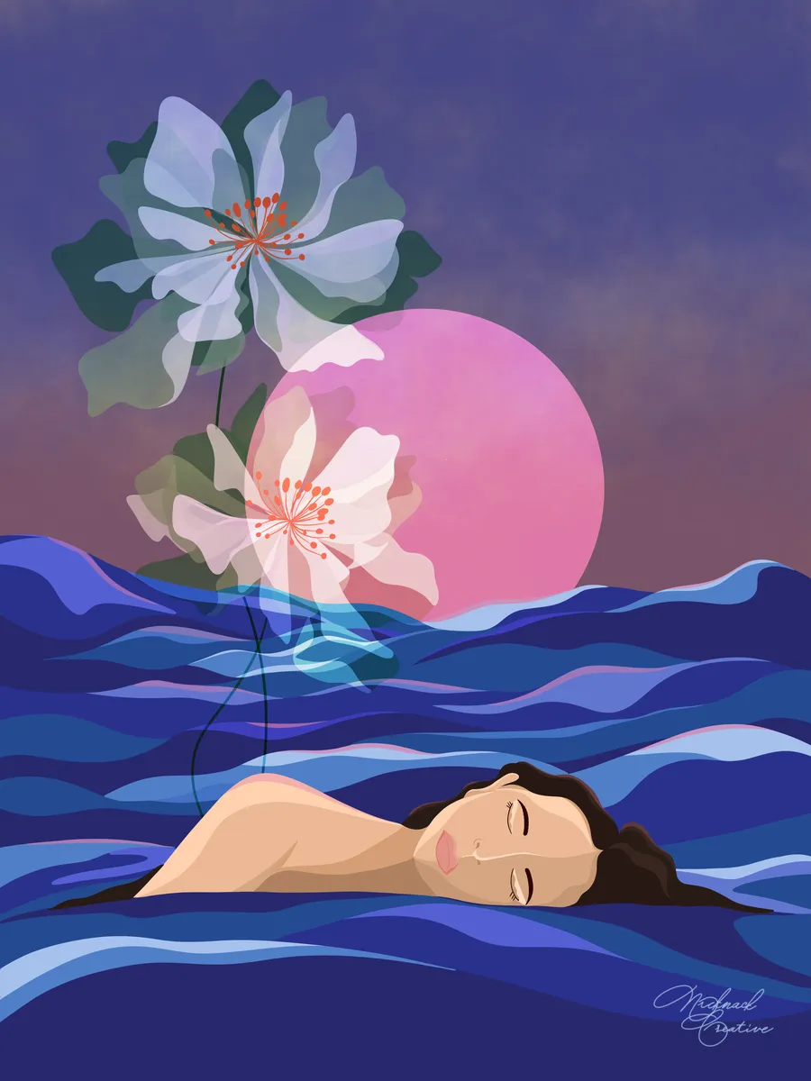 A significant encounter from the depths of subconscious. A sense of awe and connection with oneself. A time of healing. Whale dreaming captures a moment of swimming with a magnificent whale amidst the calmness of the night sea.